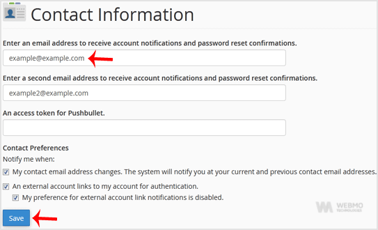 If you want to receive notification on reaching your disk quota, bandwidth usage limit, reaching email disk quota or want to update your cPanel contact information, follow these steps.