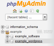 3. In left side-bar, Click on the expand button to expand database like "example".
