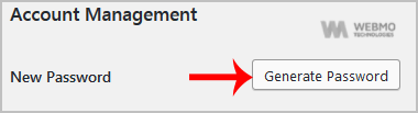 3. Scroll down and under Account Management you can see the "New Password" option. Click on the "Generate Password" button.